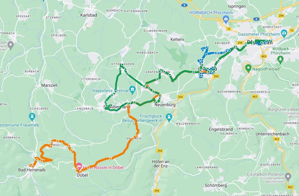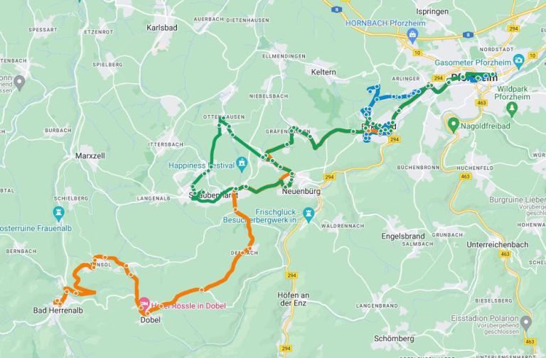 Im Dezember 2021 haben wir den Betrieb der Linien im neu geplanten Linienbündel Pfinztal/Albtal im Landkreis Karlsruhe aufgenommen. Die Linien 151, 152, 153, 154, 155, 158 und 159 bedienen wir gemeinsam mit unserem Partner Richard Eberhardt GmbH. Die Linie 152 führt jetzt von Langensteinbach bis Berghausen und die Linie 159 bedient nun regelmäßig die Strecke Berghausen - Jöhlingen - Weingarten.